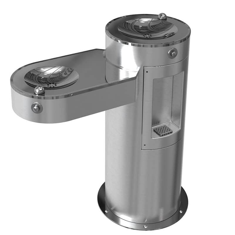 Bebdero CAI-C-2TB, de 2 tomas, en acero inoxidable, cilíndrico, 1 toma a 90 cm, 1 toma a 83 cm para personas en silla de ruedas, 1 llenador de botellas.