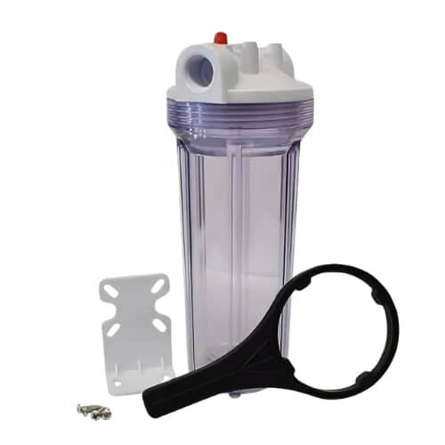 Portacartucho con purgador claro de 2.5″ x 10″. Conexión de ¾”